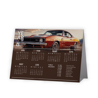 Tent or A-Frame Calendars are a cost effective way of printing a calendar. These are basically a triangle made from scoring and folding a printed sheet. This shape gives this product the name ‘Tent’ or ‘A-Frame’. They are a cost-effective way of printing more for mass distribution.