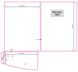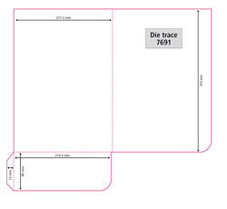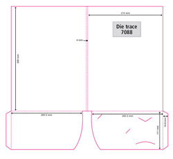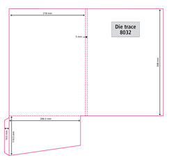 Instruction: Please use an image area of max 300mm x 430mm for your digital folders, you can create your artwork single or double-sided but please keep in mind that the white flap will cover a section of your artwork on the inside of the folder. We can offer you the following standard pocket options: